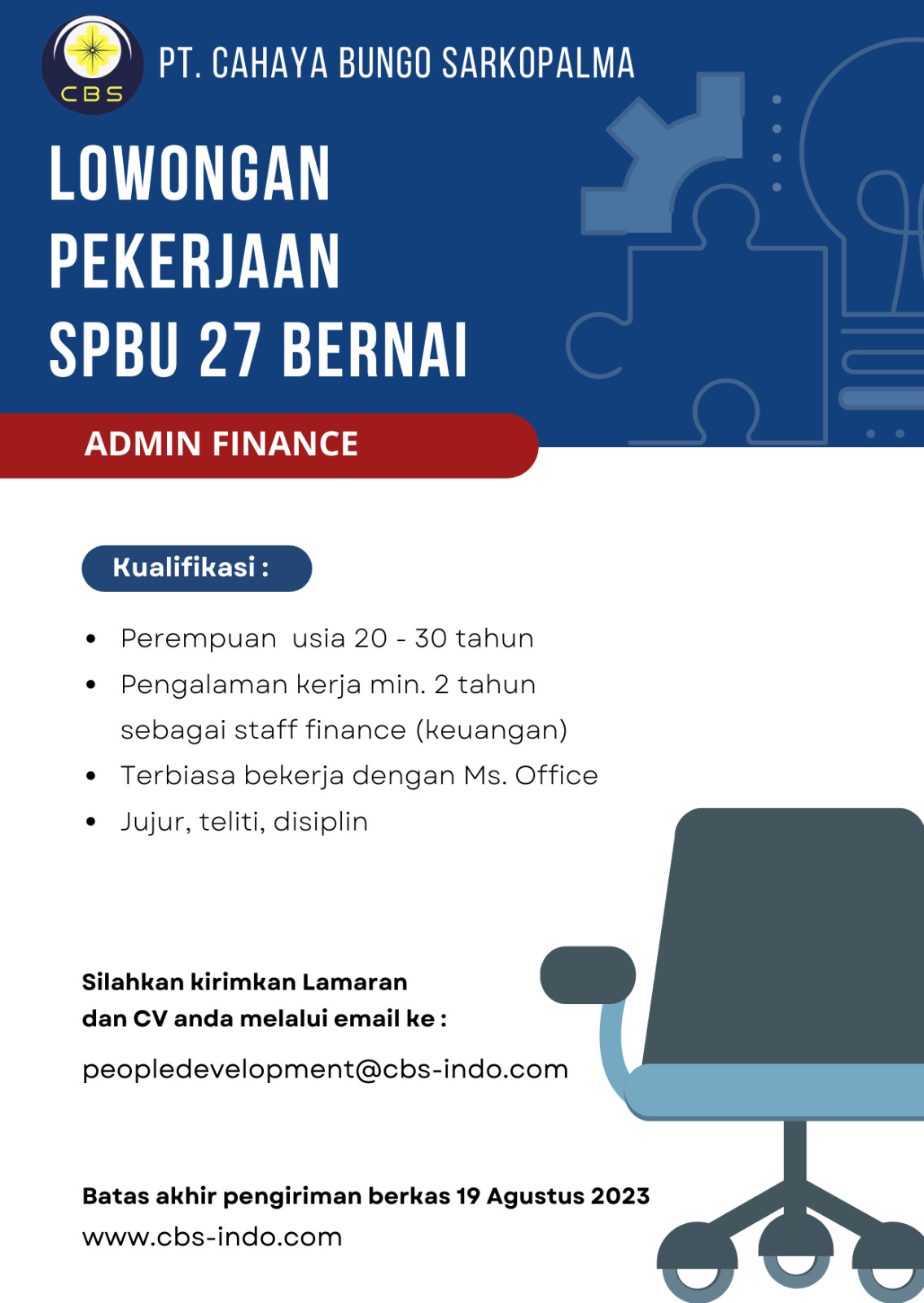 - Pendidikan minimal SMA/SMK sederajat