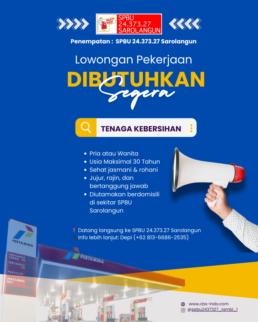 - Diutamakan memiliki pengalaman sebagai operator SPBU (tidak wajib)